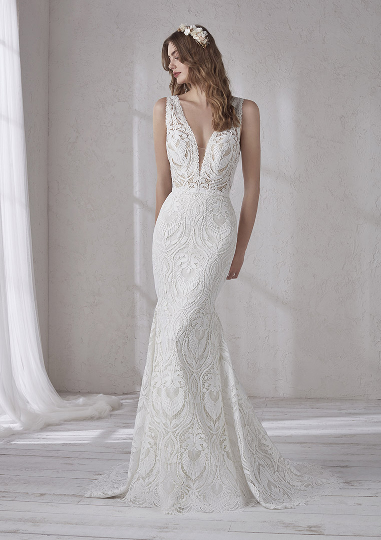 Die Kleider von Pronovias sind wie gemacht für Bräute, die ihren Hochzeitstag mit einem selbstbewussten Auftritt feiern möchten. Ob körperbetonte Meerjungfrauenschnitte, aufwendig gearbeitete Spitzenkleider oder fließende Modelle mit tiefen Rückenausschnitten – jedes Design wirkt durchdacht und ist zugleich tragbar. Besonders auffällig ist der gekonnte Einsatz von Transparenz, Applikationen und Drapierungen, die das Kleid zur Bühne für Deine Persönlichkeit machen.
