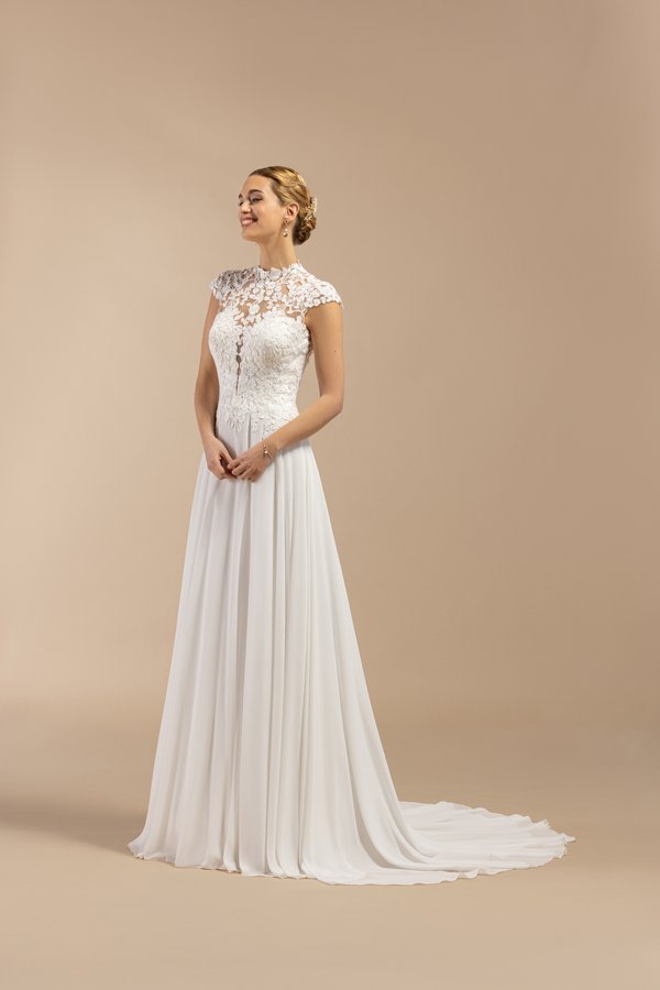 A-Linien Brautkleid mit hochgeschlossenem Oberteil aus Spitze