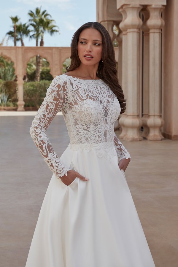 A-Linien-Brautkleid aus Mikado mit Spitze und Taschen