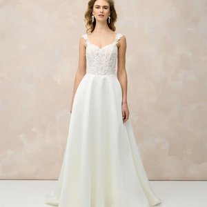 Dieses A-Linien Brautkleid ist zeitlos und passt sowohl zu einer glamourösen Feier im Schloss als auch zu einer modernen Stadthochzeit. Mit seiner klaren Linienführung und dem femininen Schnitt bringt es Deine Persönlichkeit perfekt zum Ausdruck.