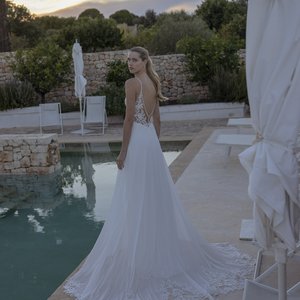 Jedes Detail dieses Kleides wurde mit Liebe und Sorgfalt gestaltet, um die Schönheit der Braut zu unterstreichen und einen unvergesslichen Hochzeitslook zu schaffen. Lass dich von der zeitlosen Eleganz dieses Kleides verzaubern und erlebe, wie es deine Hochzeit in einen magischen Moment verwandelt.