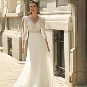 Die zeitlose Schönheit und die raffinierten Details von Biskra machen es zu einem wahren Juwel unter den Hochzeitskleidern. Von der zarten Verarbeitung bis hin zur perfekten Passform strahlt dieses Kleid pure Eleganz aus und wird die Braut an ihrem Hochzeitstag zweifellos zum strahlenden Mittelpunkt machen. Entdecke die Magie von Biskra und erlebe den Zauber eines Kleides, das deine Träume wahr werden lässt.