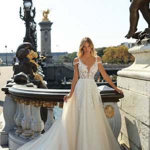 Dieses Modell ist ideal für Bräute, die einen natürlichen, aber dennoch eleganten Look suchen. Ob eine Boho-Hochzeit am Strand, eine Vintage-Trauung in der Natur oder eine klassische Feier in einer romantischen Location – dieses Kleid passt sich jeder Umgebung perfekt an und verleiht der Braut eine zauberhafte Aura.