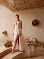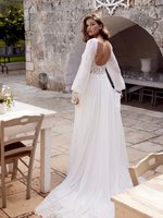 Besonders die Kombination aus romantischer Spitze und luftigem Tüll macht dieses A-Linien Brautkleid zu einem absoluten Traum für jede Bride-to-be, die sich Leichtigkeit, Bewegung und pure Eleganz wünscht. Ein Brautkleid, das perfekt zu einer modernen Hochzeit passt – egal, ob im eleganten Saal oder in einer mediterranen Outdoor-Location.