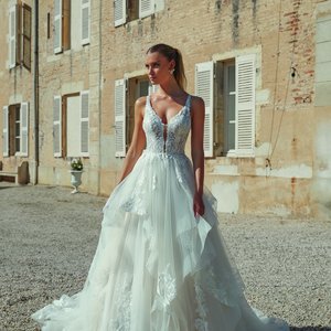 Dieses Kleid gehört zur Kategorie „Einfach schick“ und besticht durch seine klaren Linien und die luxuriösen Details. Es ist perfekt für Bräute, die eine Kombination aus klassischen Elementen und modernen Highlights suchen. Egal ob bei einer eleganten Feier in einer großen Location oder einer intimeren Zeremonie – dieses Kleid passt sich jeder Umgebung an und lässt Dich strahlen.