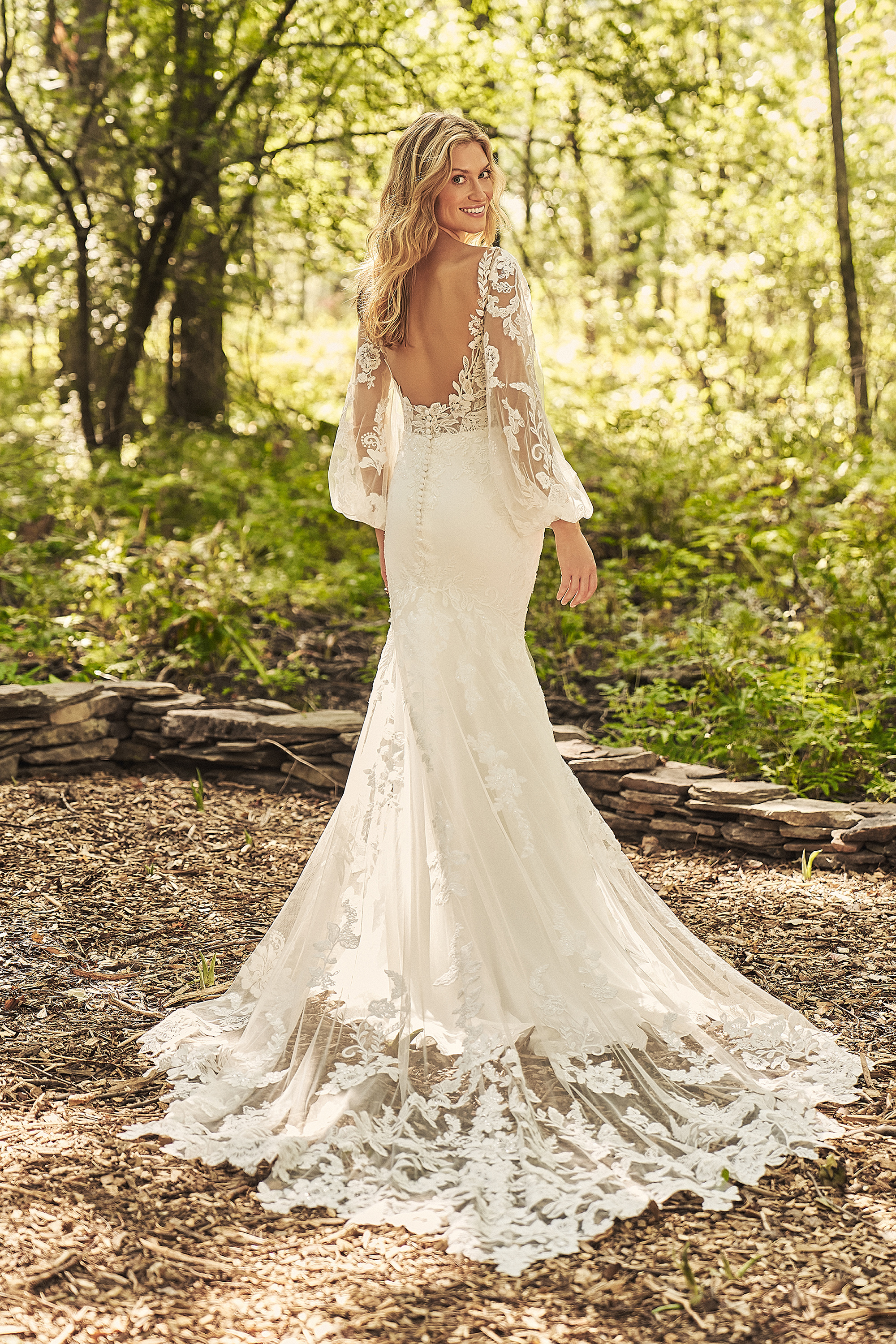 Die einzigartigen Spitzendetails auf dem Kleid unterstreichen den Boho-Trend, der aktuell in der Brautmode sehr angesagt ist. Kombiniert mit den stylishen Ärmeln ergibt sich ein Look, der sowohl verspielt als auch raffiniert ist. Ob für eine romantische Gartenhochzeit oder eine glamouröse Feier im Festsaal – dieses Kleid ist ein wahrer Hingucker und lässt Dich wie eine moderne Märchenprinzessin fühlen.