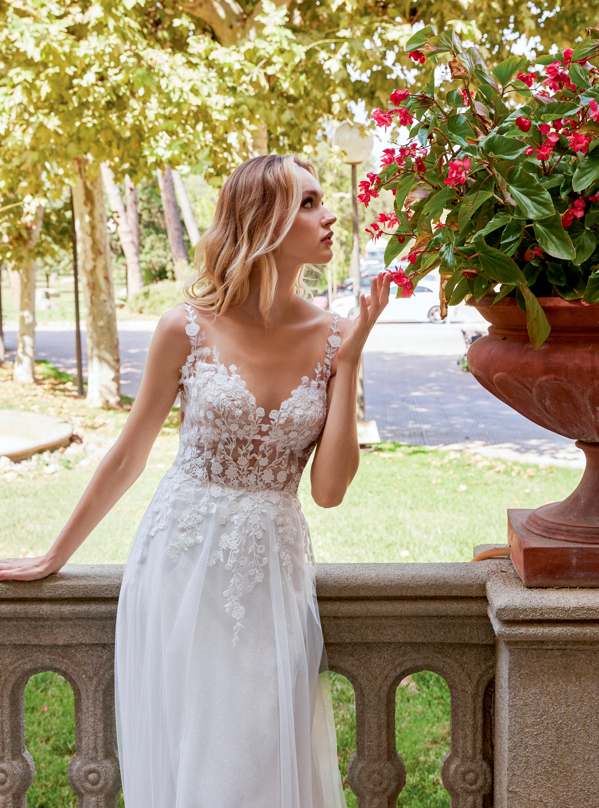 A-Linien Brautkleid mit verspielter Blütenspitze und Illusion-Oberteil