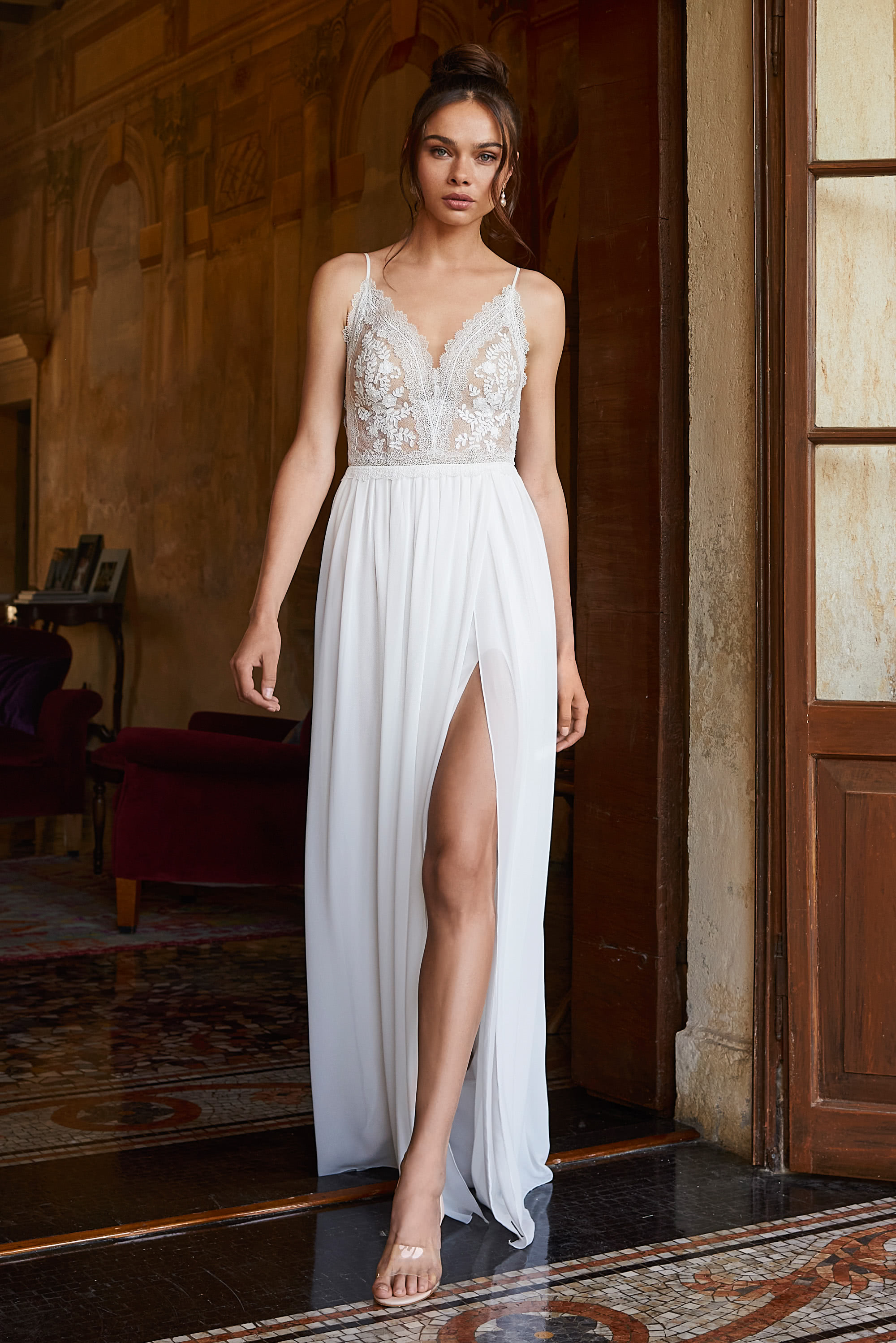Der Chiffonrock ist nicht nur luftig und leicht, sondern auch unglaublich elegant. Jeder Schritt wird von einem Hauch von Eleganz begleitet, der das Kleid zum Leben erweckt und dir ein Gefühl von Anmut verleiht. Ein subtiler Beinschlitz sorgt für den perfekten Touch an Sexyness, der dem Look eine verführerische Note verleiht, ohne dabei die Eleganz des Gesamtbildes zu beeinträchtigen.
