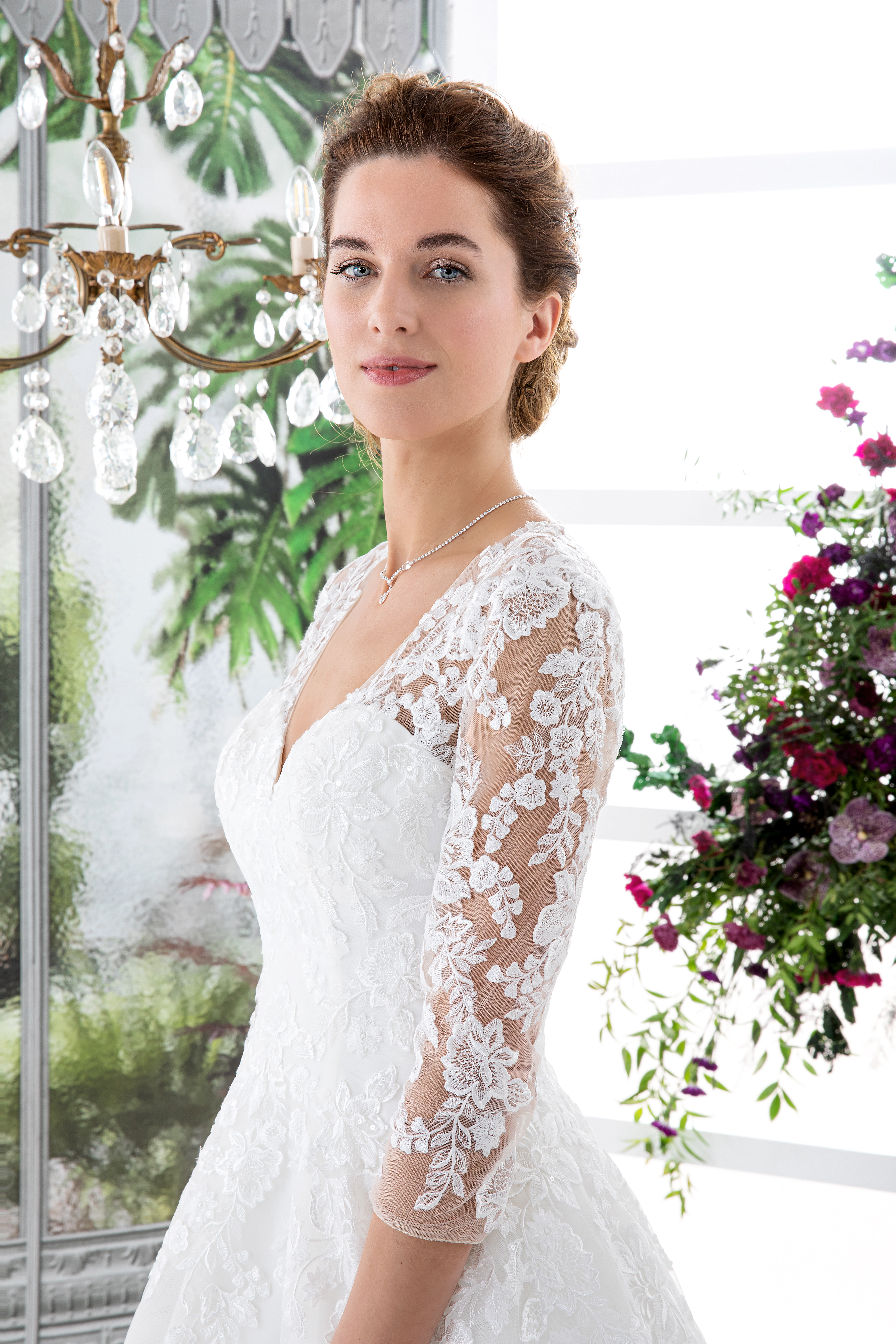 Dieses Brautkleid ist die perfekte Wahl für Bräute, die sich an ihrem Hochzeitstag wie eine Prinzessin fühlen möchten. Mit seiner luxuriösen Mischung aus Blüten-Spitze, opulentem Tüll und raffinierten Details, vereint es romantische Tradition mit zeitloser Eleganz. Erlebe, wie dieses Kleid Deinen Hochzeitstag in ein unvergessliches Märchen verwandelt.
