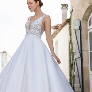Dieses Hochzeitskleid ist wie gemacht für Bräute, die das Besondere wollen: elegant, aber trotzdem jung, unkompliziert und mit genau der richtigen Portion Glam. Probier es in unserem Cinderella Store für Brautmode Köln an – und spür selbst, wie cool ein Prinzessinnenkleid heute sein kann.