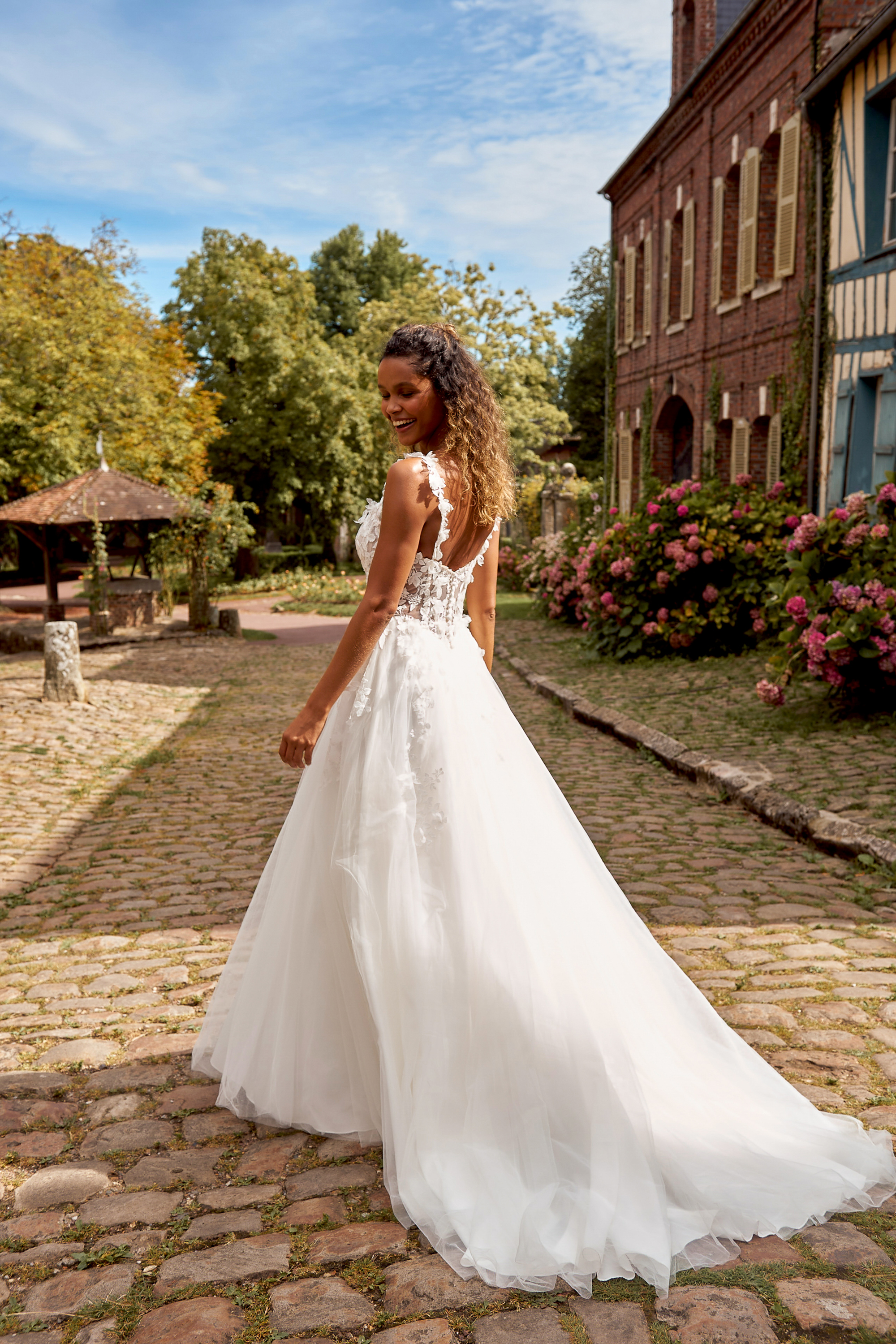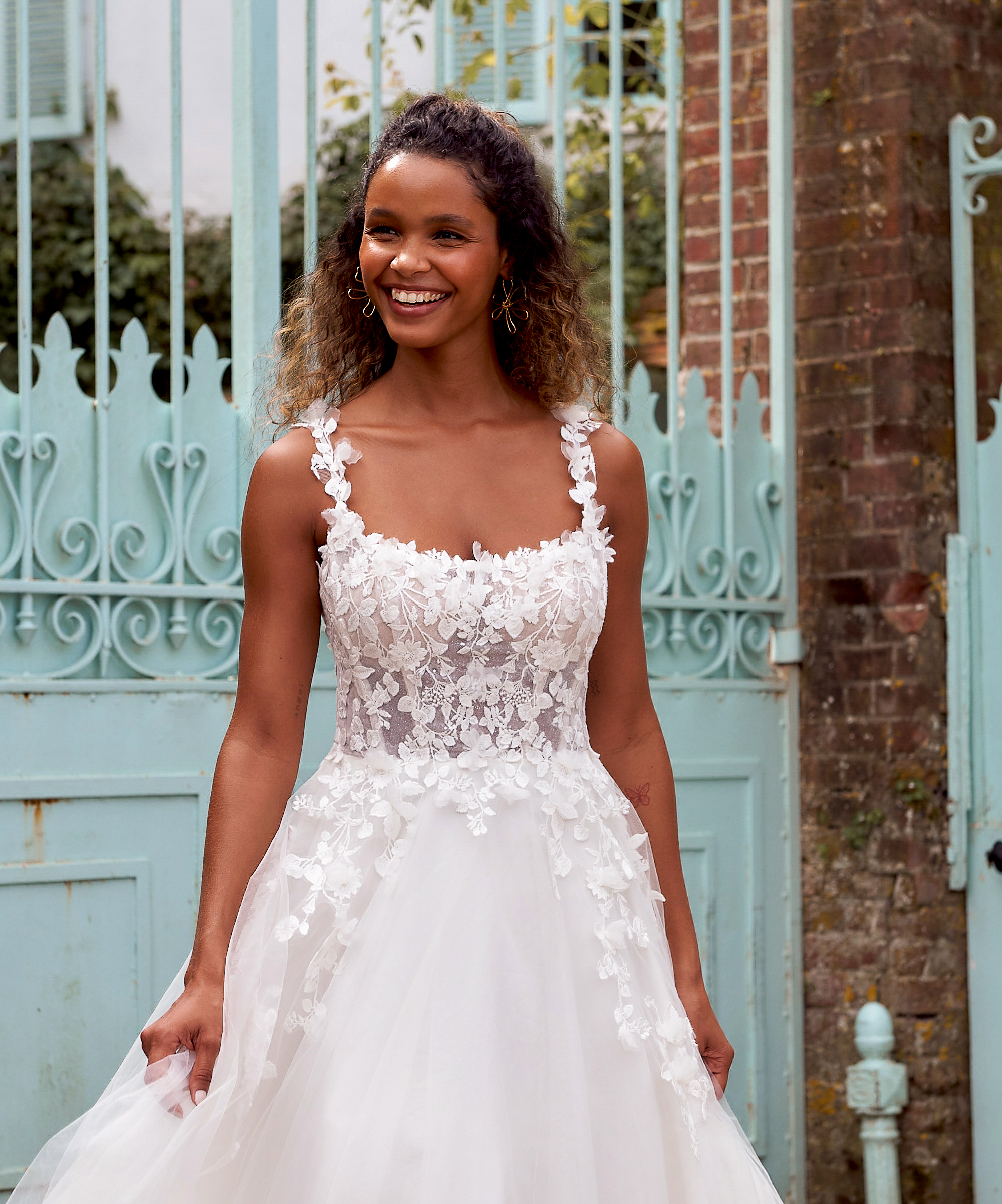 Der locker fallende Tüllrock umspielt deine Taille, sorgt für schöne Bewegung und bleibt dabei angenehm leicht – perfekt für lange Tage und durchtanzte Nächte. Style es mit zarten Ohrringen und einem natürlichen Make-up für einen frischen, modernen Bridal-Look.
