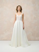Der Rock aus fließendem Organza fällt sanft bis zum Boden und schwingt bei jedem Schritt, ohne zu beschweren. Die klassische A-Linie sorgt für eine harmonische Silhouette, die nahezu jeder Braut schmeichelt. Ob für eine romantische Gartenhochzeit, eine elegante Feier im Schloss oder eine moderne Stadthochzeit – dieses Kleid passt sich Deinen Träumen an.