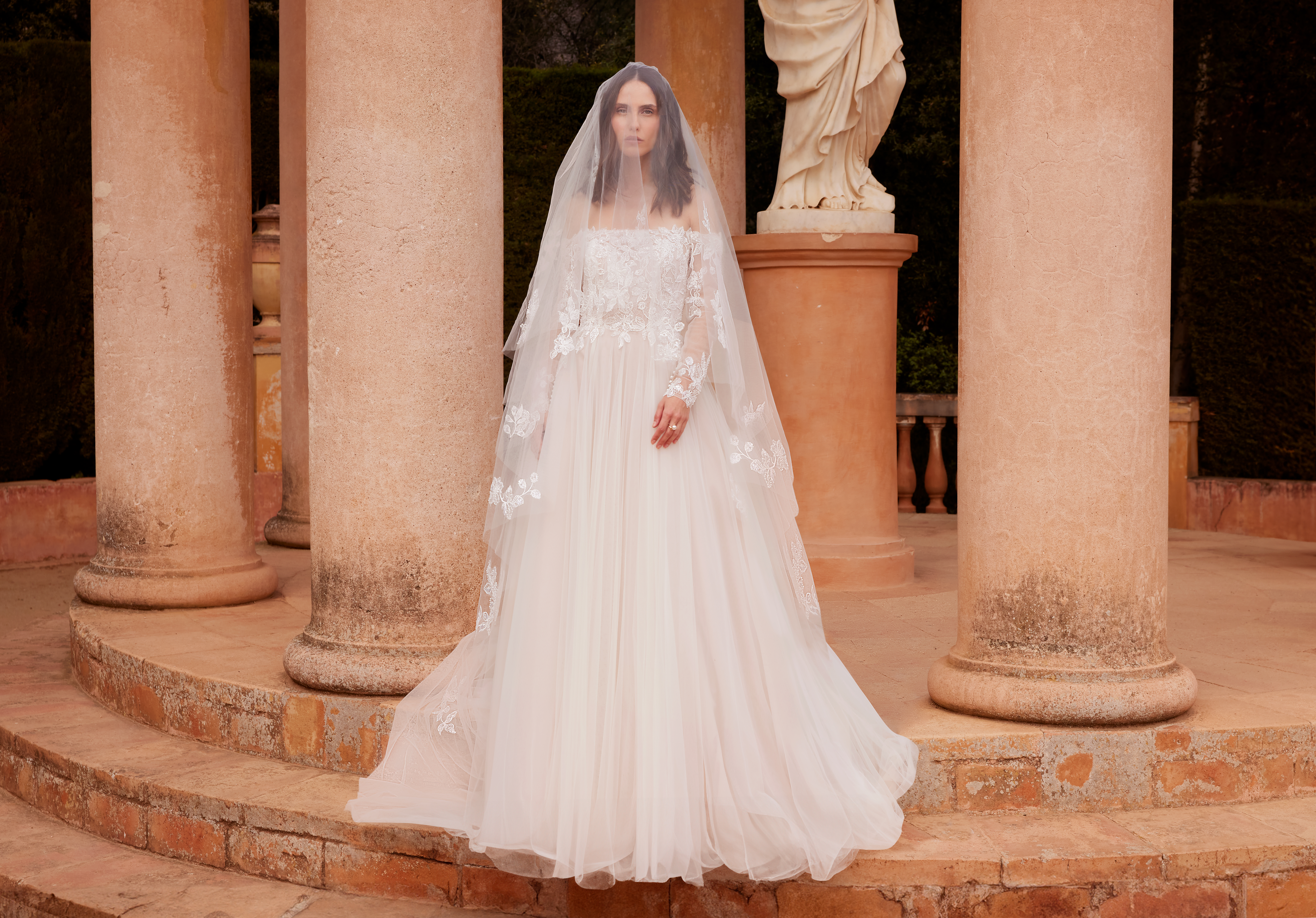 Das Illusionsoberteil ist ein echtes Highlight und verleiht dem Look eine einzigartige Anmut. Zarte Spitze zieht sich über das gesamte Mieder und die langen Ärmel, wodurch eine romantische und gleichzeitig moderne Optik entsteht. Der Herz-Ausschnitt sorgt dabei für eine feminine und verführerische Note, während die zarte Transparenz des Oberteils dem Look Leichtigkeit und Eleganz verleiht. Die langen Spitzenärmel geben dem Kleid zusätzlich eine edle Note und sind perfekt für Bräute, die sowohl Romantik als auch Stilbewusstsein ausstrahlen möchten.