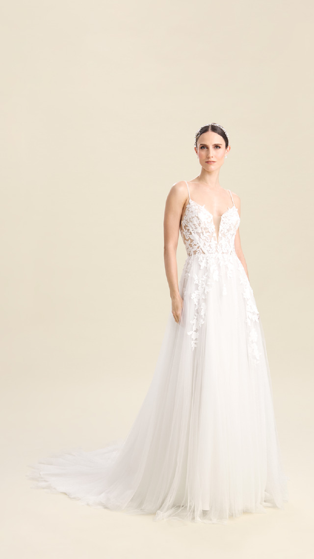 Bei Cinderella Brautmode Köln findest Du dieses Kleid exklusiv – für Bräute, die sich ein modernes, romantisches Statement wünschen. Probiere es an und spür, wie leicht und besonders Du Dich darin fühlst!