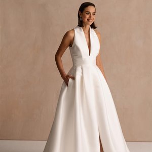 Dieses Brautkleid vereint alles, was eine romantische Braut sich wünscht: florale Details, eine leichte, fließende Silhouette und eine perfekte Balance zwischen Eleganz und Modernität. Es ist ideal für Hochzeiten im Freien, romantische Zeremonien oder sogar für eine märchenhafte Feier in einem Schloss.