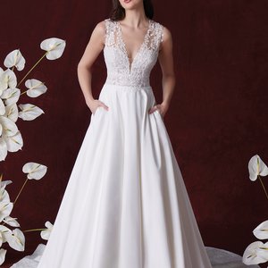 Die zarten, tüllbezogenen Knöpfe am Oberteil und die elegante, kapellenlange Schleppe setzen gekonnt Akzente und sorgen für einen majestätischen Abschluss. Dieses Brautkleid ist nicht nur ein Kleidungsstück; es ist ein Symbol für Liebe, Eleganz und zeitlose Schönheit. Mit Heath wirst du nicht nur eine Braut sein, sondern die Protagonistin eines romantischen Märchens, das sich an diesem besonderen Tag entfaltet.