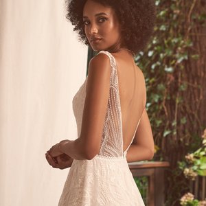Was den Rücken betrifft, so verleihen zarte Spitzenträger diesem traumhaften V-Rücken eine romantische Note, die das Auge fesselt und deine Anmut unterstreicht. Jedes Detail ist mit äußerster Sorgfalt und Liebe zum Handwerk gestaltet, um dir an deinem besonderen Tag ein unvergessliches Erlebnis zu bieten.